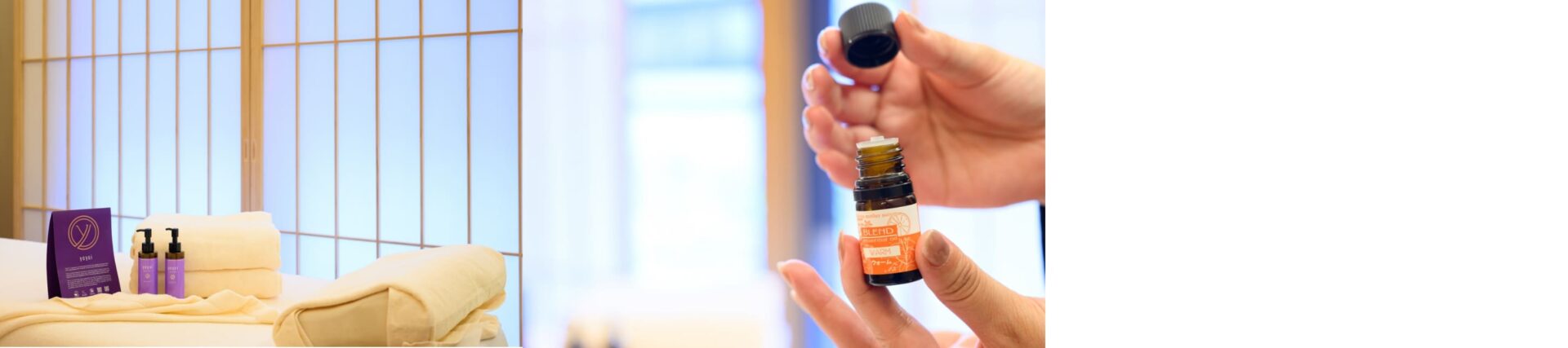 寒い時期に特に効果を発揮するのが「ホホバオイル・アロマトリートメント」。肌に優しいホホバオイルを温めて、全身にたっぷりと浸透させながら施術を行っていく。軽いタッチから凝りにアプローチする強めの圧まで、セラピストが希望を伺い心身共に深いリラクゼーションへといざなう。肌や筋肉はもちろん、自然から抽出されたアロマの香りや心地良いBGMで五感すべてを癒す。心身ともに冬を乗り越えるコンディションを整えていただきたい。